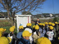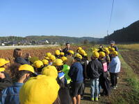 この民話は、布田川断層の地震と深い関係があると言われています。子供達は民話の説明を聞いた後、実際の横ずれ断層を実際に見て、地震のすごさを体感していたようです。
