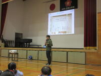 本田先生から「タブレットの正しい使い方」、田添先生から「学習の七つ道具」について話が合った後、最後に6年生が「平和の誓い発表」を行ってくれました。145人の力強いメッセージと歌声が体育館に響き渡り、下級生(特に5年生)は真剣な表情で見つめていました。