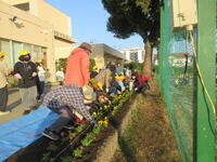 寒い朝でしたが、早くから地域の皆様、保護者の皆様にご協力いただき、子ども達も一緒にたくさんの花の苗を植えることができました。