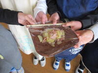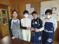 今日は、6年3組の実習でしたが、完成した「ジャーマンポテト」を、上田まなとさん、大岩そらさん、河北ゆずきさん、林たくとさんが、試食に届けてくれました。