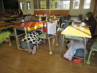 緊急地震速報が放送で流されると、まずみんなは机の下に潜り、身の安全を守る行動が素早くできました。その後、教頭先生から避難の放送を聞いて、全員が素早く運動場に避難することできました。