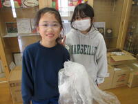 放課後、5の3前川すいれんさん と 5の4山﨑さえさんが、学校の周りに落ちていたゴミを拾ってきてくれました。お菓子のゴミや門で配られていたチラシだったので、子どもが捨てたんじゃないかと、自主的に拾い集めてくれていました。