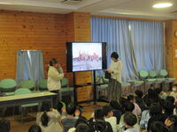 次に、メキシコでよく食べられているものや有名な場所、観光地についてたくさんの写真を見せていただきながら説明をうけました。初めて見る物がほとんどで、みんな興味津々でみていました。メキシコの古くから伝わる玩具やお菓子など、現地からたくさんの物を買ってきて見せていただきました。