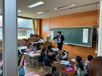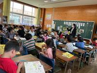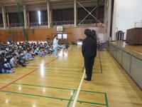 まず体育館で「就任式」が行われました。新しく10名の先生方がやってきてくださいました。(詳しくは今日お配りしたプリントまたは学校HPに添付のプリントをご確認ください。)6年原口すみれさんが、代表して歓迎の言葉を伝えてくれました。