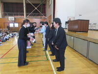 最後は、PTA役員の皆さんから、退任される先生方に花束が贈られ、全員でお見送りをしました。