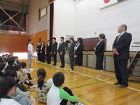 先週金曜日27日に、今年度末で広安小から離れられる10名の先生方とのお別れの会「退任式」が行われました。