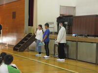 まず、委員会活動の新委員長・副委員長の自己紹介がありました。すべての委員が「ノー原稿」で、抱負や目標、具体的な取組などを発表してくれました。「すごい!」の一言でした。下級生も食い入るように見つめていました。