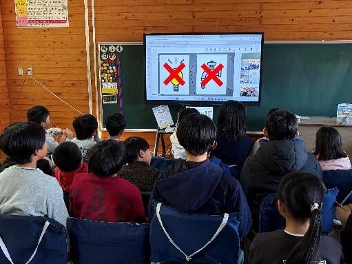 2月6日(木)に、愛知県の形原北小学校とオンラインで交流会を行いました。地域のフィールドワークをして分かったことや考えたことを代表の子どもたちが発表しました。形原北小学校の子どもたちからの質問にも、自分たちの言葉で答えていました。防災学習を通して学んだことを、これからの生活でも生かしてほしいと思います。