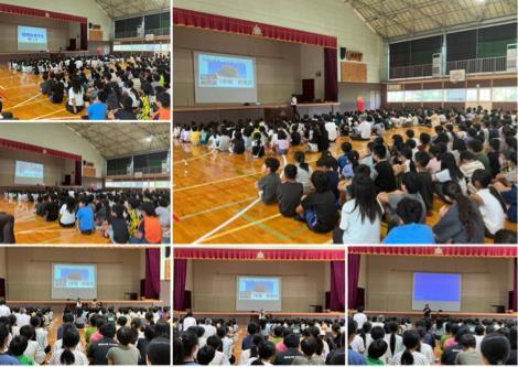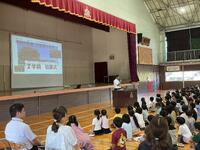 校長先生からは、夏休みに行ってほしいこととして、『自ら学ぶ』『表現力を豊かにする』『きまりを守る』ということについてお話がありました。子どもたちは、うなずきながら、真剣に耳を傾けていました。