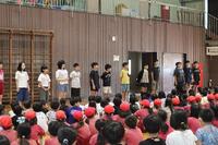 5月9日(金)の、お見知り集会・遠足は、残念ながら雨となりましたが、全校児童が習教館に集まり、お見知り集会を行いました。