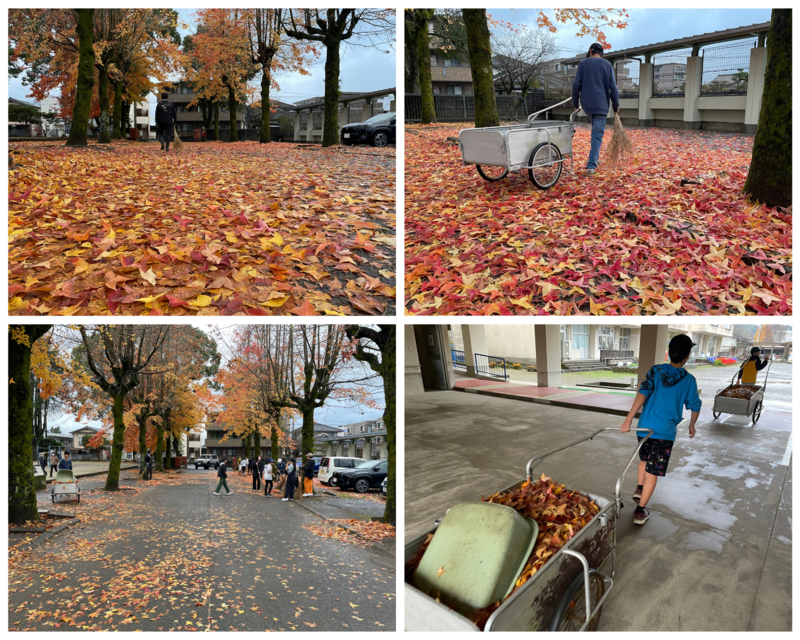 毎朝、西門駐車場に絨毯のように広がるたくさんの落ち葉。