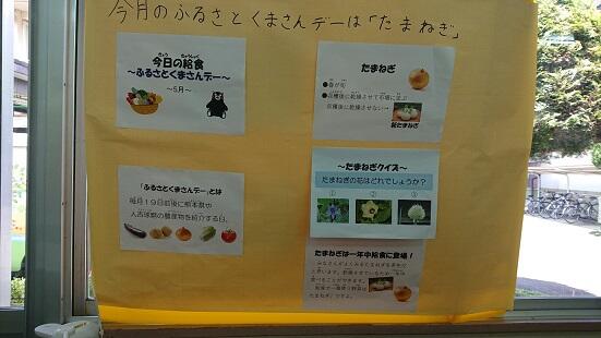 各学校で、毎月ふるさとくまさんデーの日の食材を、掲示や電子黒板でクイズを交えて