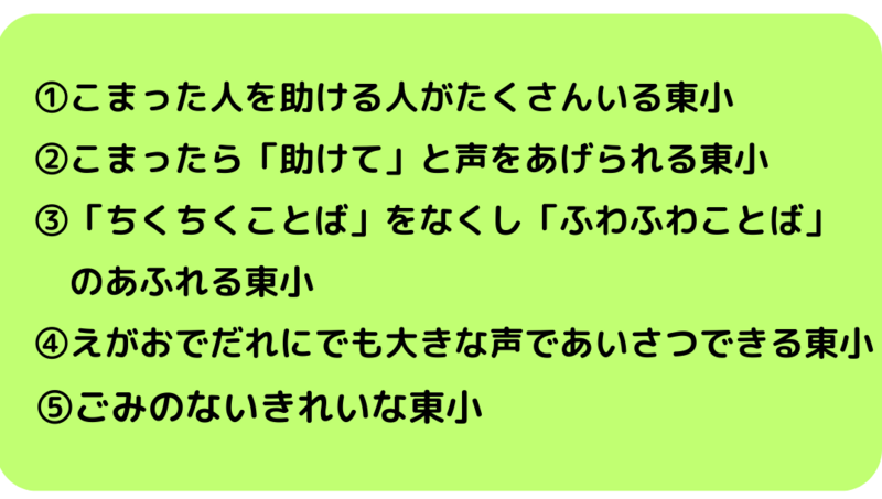 宣言事項の達成に向けて、各学級で取組を進めていきます。