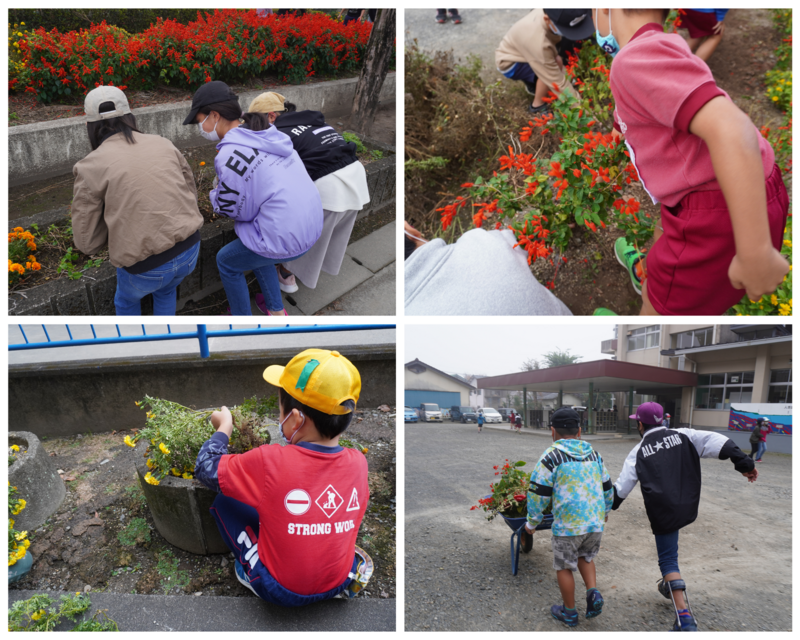 今回は各学級園に植えられていた花を抜く作業が行われました。