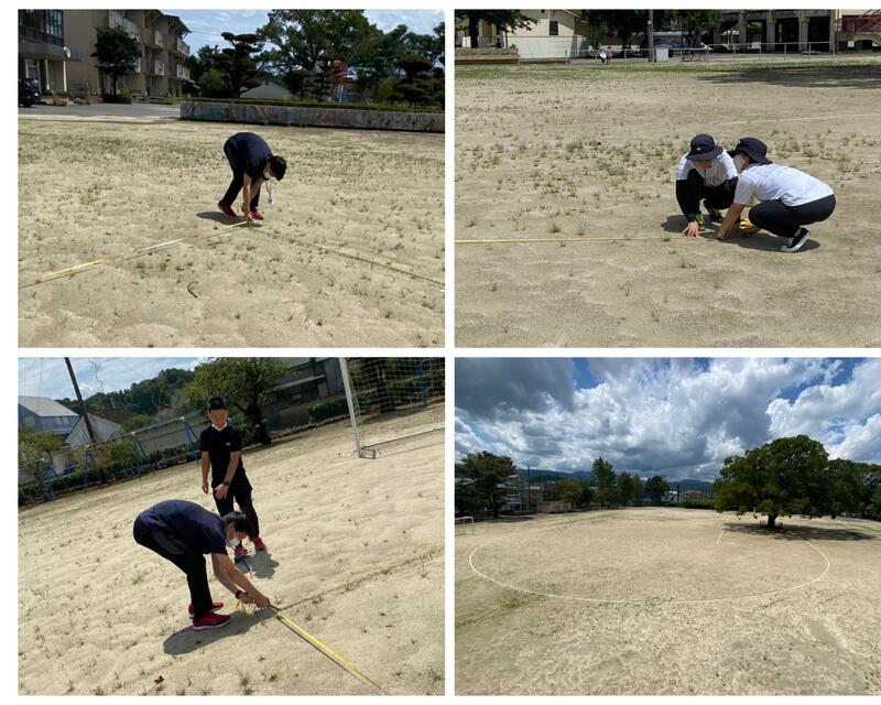 久しぶりに太陽と青空が見られた今日は、運動場のライン引きを行いました。