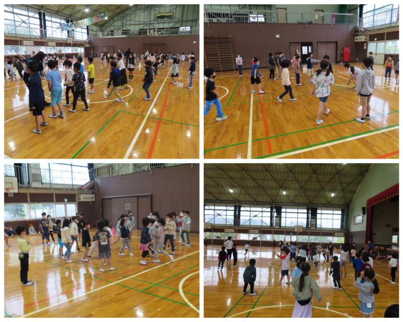 21日(木)、雨で遠足に行くことができませんでしたので、1・6年生、2・3年生、4・5年生で体を動かして遊びました。