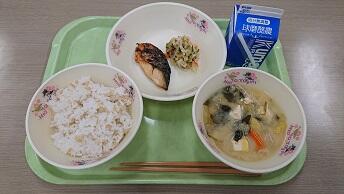 10月6日の献立は、赤飯、つぼん汁、サバの塩焼き、なます、牛乳でした。