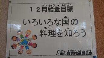 12月の献立のテーマは「いろいろな国の料理を知ろう」でした。
