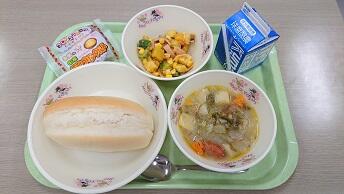 5月19日(金)は、ふるさとくまさんデーの給食で、タマネギを使った献立でした。