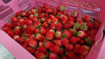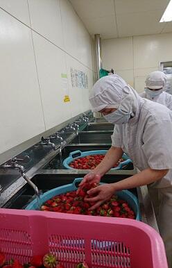 給食を作りました。青果市場から熊本県オリジナル品種いちごの「ゆうべに」を