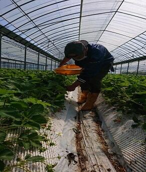 JAくま苺部会、西典明さんの苺収穫の様子を見せていただきました。