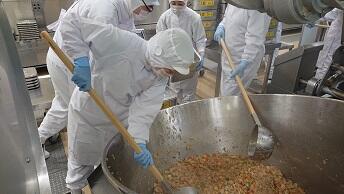 1日に220㎏のお米を炊いています。蒸らし時間もしっかりとって、配缶していきます。