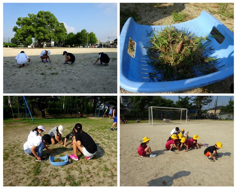 まだまだ梅雨が続きますが、最近は天気のいい日が続いています。運動場の草もたくさん伸びてきました。