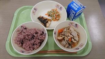 10月6日の給食は、赤飯、つぼん汁、さばの塩焼き、三食なます、牛乳でした。