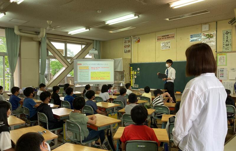 9日(月)、3年生の教室ではタブレットのパスワード変更のための授業が行われていました。