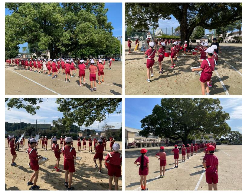 1回目の練習にもかかわらず、授業開始のチャイムが鳴るときには全児童がきちんと自分の場所に並ぶことができ、校長先生に褒められました!