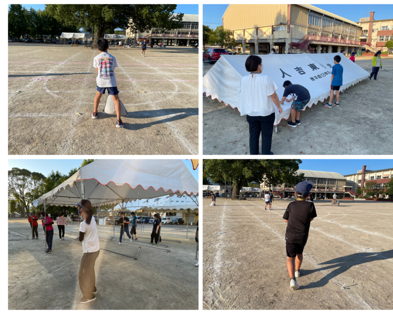 運動会では、5・6年生の児童が招集・出発・決勝・記録・放送・準備・救護・応援の8つの係に分かれて運営を手伝っています。