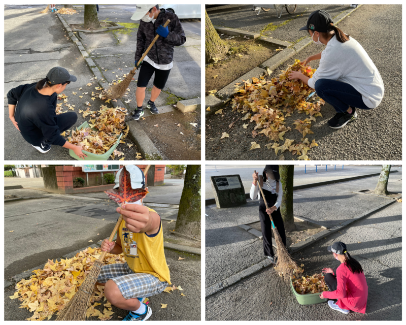 毎朝、5・6年生が中心となって落ち葉掃きをしてくれています。
