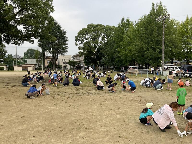 ラジオ体操をした後は、運動場の除草作業をしていただきました。