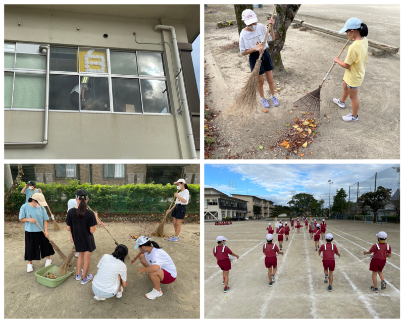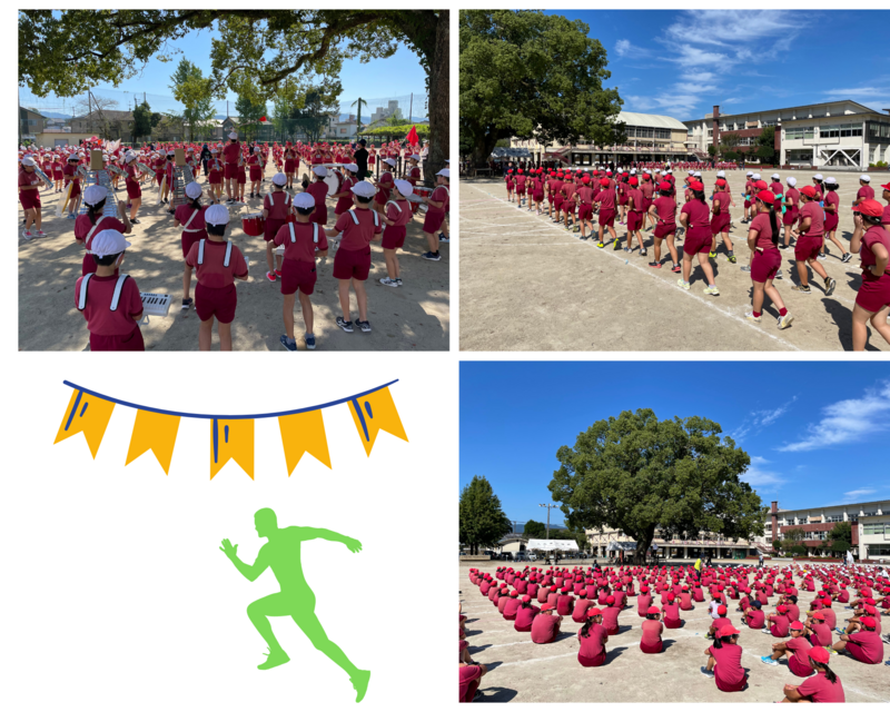 そして放課後の運動場では、環境整備をしてくれる6年生、応援合戦の練習をする応援リーダーたち、行進曲の練習をする鼓隊の人たちがそれぞれ活動をしています。