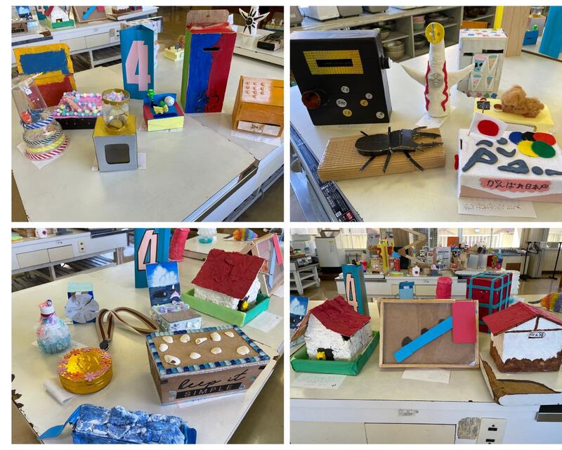 今、夏休みに子どもたちが制作した作品が家庭科室に展示されています。