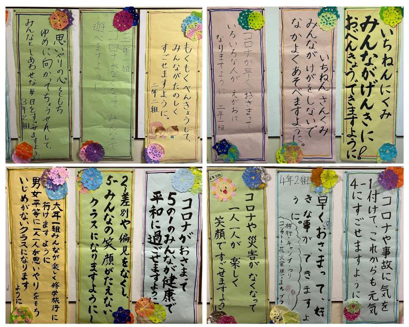 集会では、各学級の代表が学級で決めたお願いごとを発表しました。昨年に続き、今年も新型コロナウイルス関連のお願いごとが多かったようです。