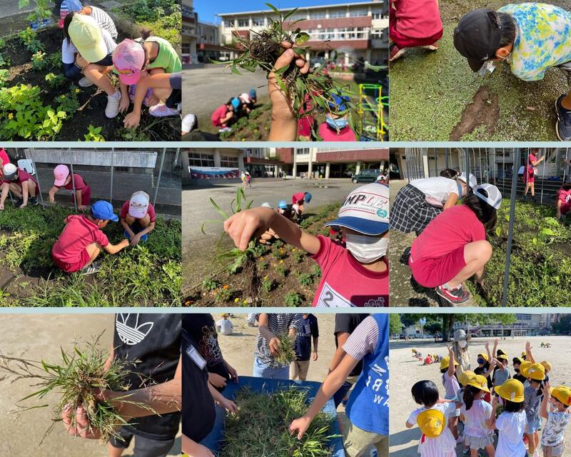 ラジオ体操の後は、運動場の草取りをしていただきました。
