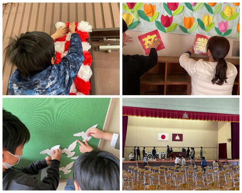 22日(火)、5年生と職員で卒業式の準備を行いました。
