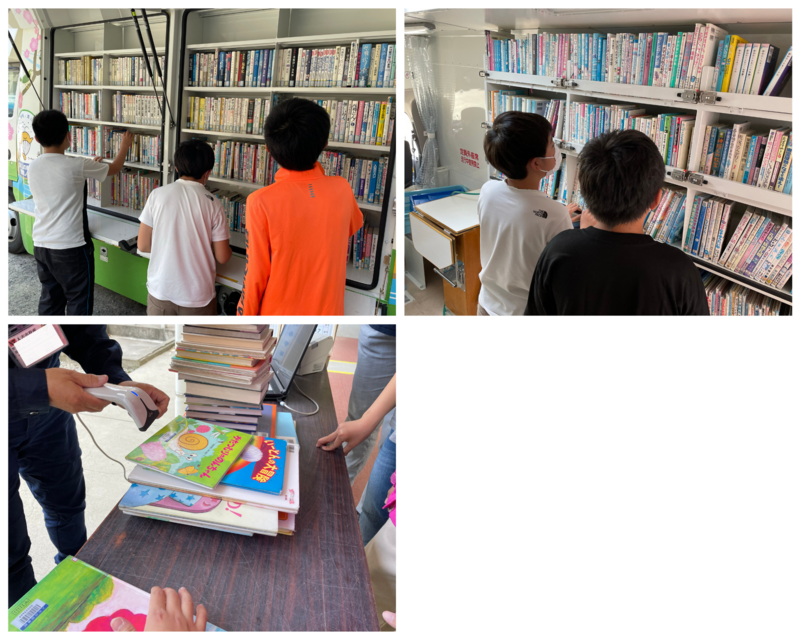 25日(水)の昼休みの時間、移動図書館車が来ました。