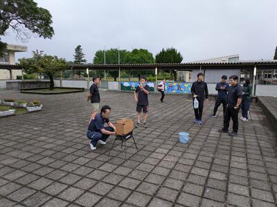 おなじみの球磨工業高校に出かけての取組です。工業高校との連携した取組の