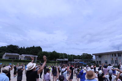 本校の児童、工業高校の生徒、両校の職員など総勢500人規模での