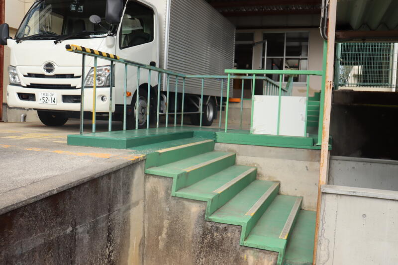 管理棟2階からの非常階段。錆びていて危険でしたが、改修を終え使用できるようになりました。