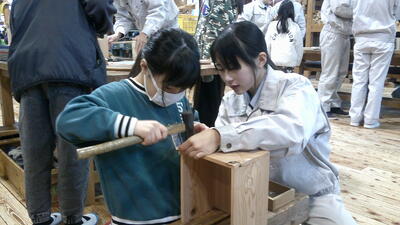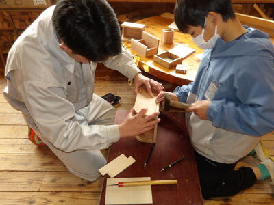 一人一人が設計した作品を、高校生の手を借りながら作品に仕上げていきます。