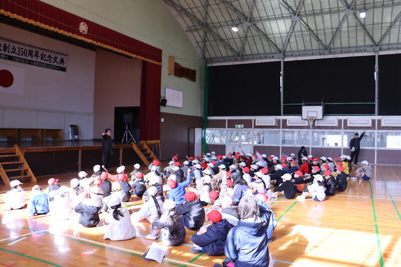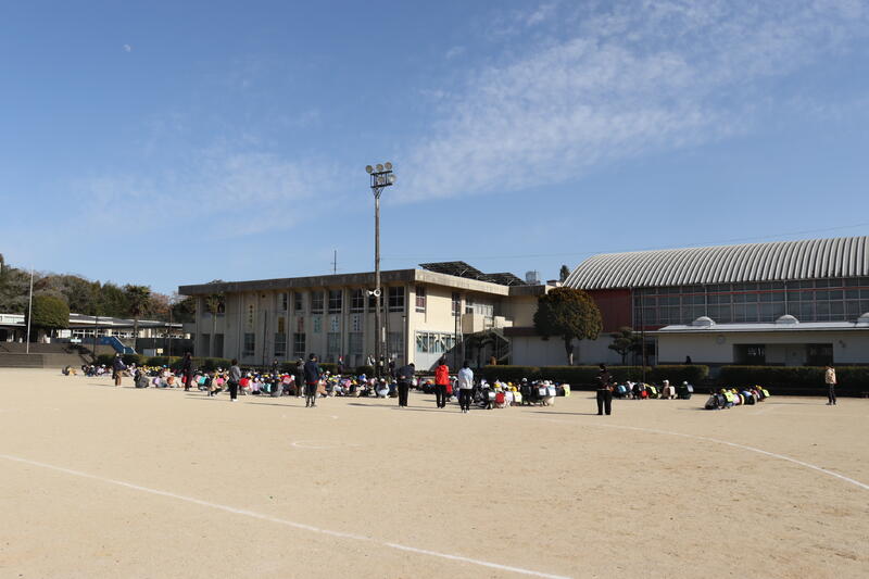 本校の児童、工業高校の生徒、両校の職員など総勢500人規模での