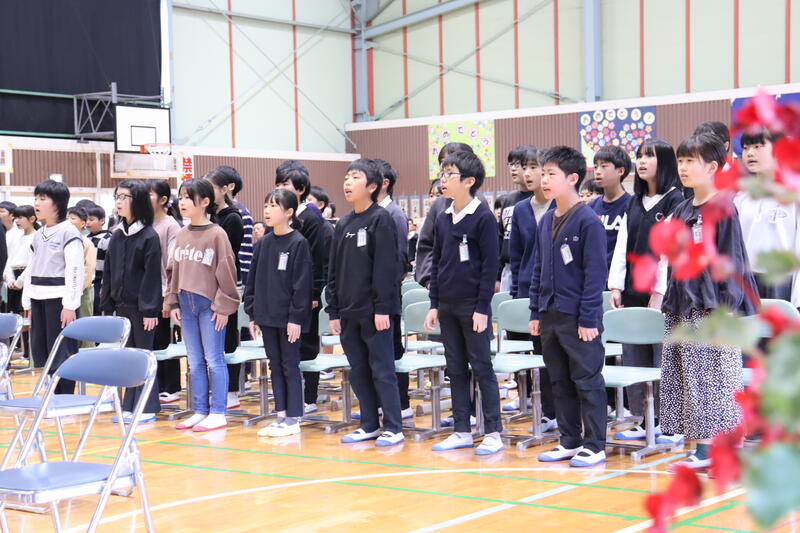 6年生に向けて全学年からお礼のメッセージがあり、6年生からは歌を歌ってもらいました。