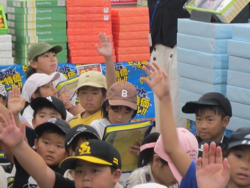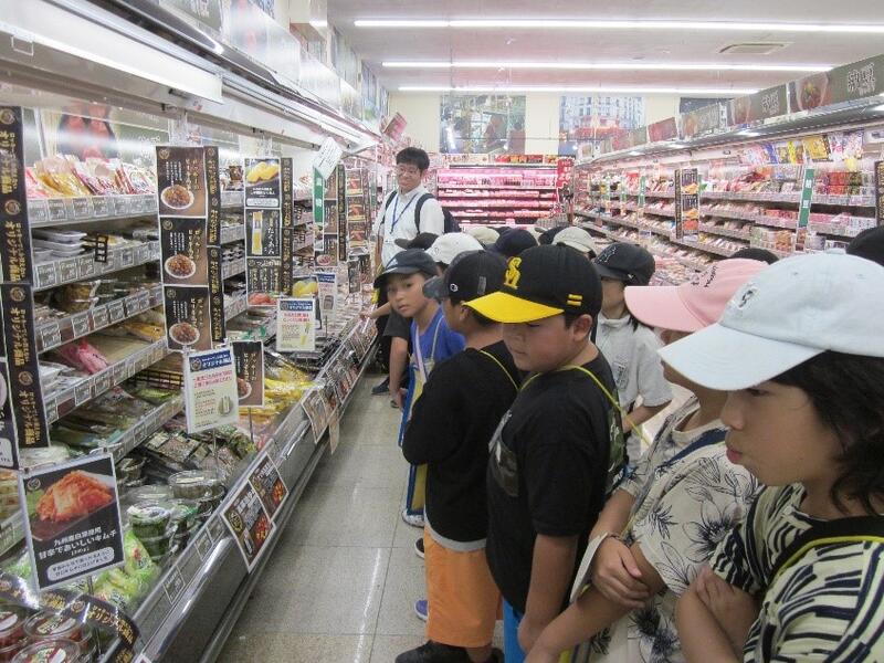 3年生は社会科で「店ではたらく人」の学習をしています。働く人々の工夫や思い、地域とのつながりなどについて詳しく知るために、校区にあるスーパー「ロッキー」に行って店内の見学をさせていただきました。子どもたちも、「よくスーパーには行くけど、こんなにじっくり見るのは初めてです!」と、興味津々で売り場を見て回っていました。