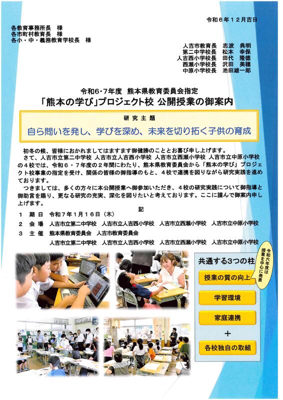 教育委員会や教育事務所の皆様からは、人吉西小にたくさんの応援と御指導をいただきました。これからの教育活動にしっかり反映させていきます。