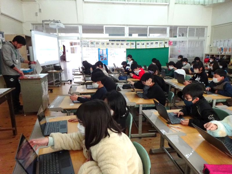 一人1台に学習用端末が配布され、様々な場面で活用を行っています。