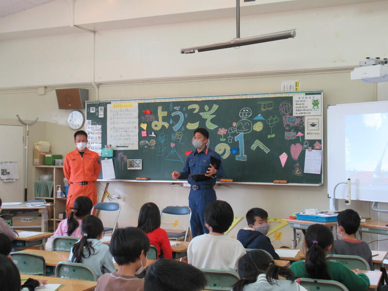 2年生活科の授業に、消防士のお父さんお二人に来ていただきました。