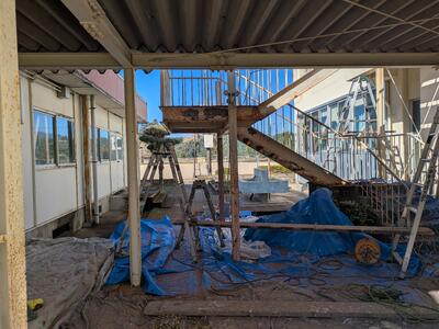 非常階段の修繕中(7日には応急的に終わる予定とのことです)